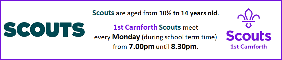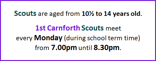 Around the age of 14 Scouts are able to move up into Explorer Scouts. (Explorer Units are run by Lonsdale District and, currently, the closest Explorer Unit to Carnforth is at the SilverHelme Activity Centre.)